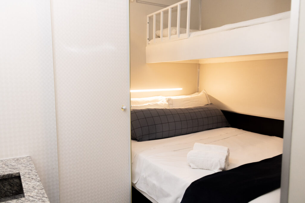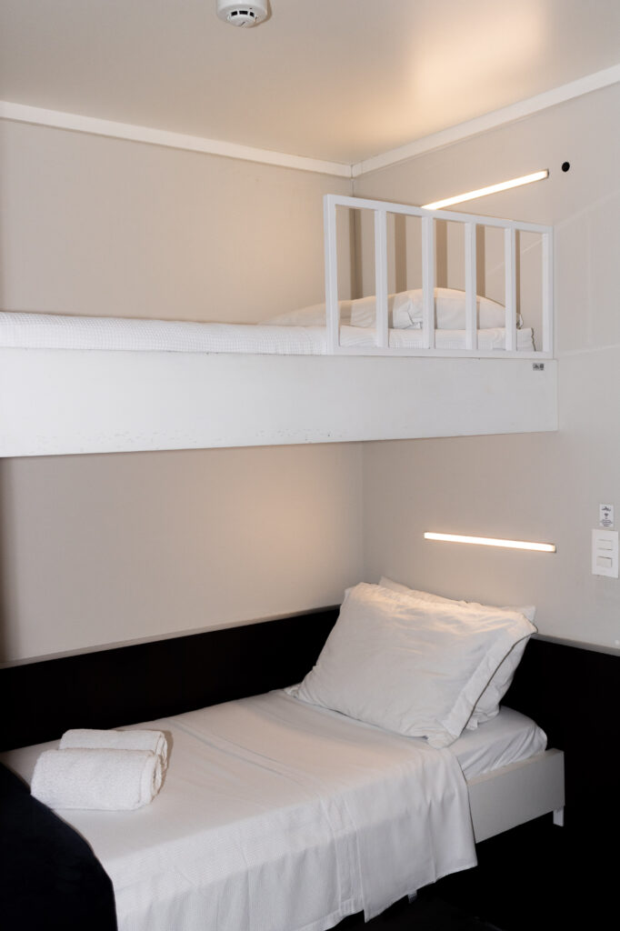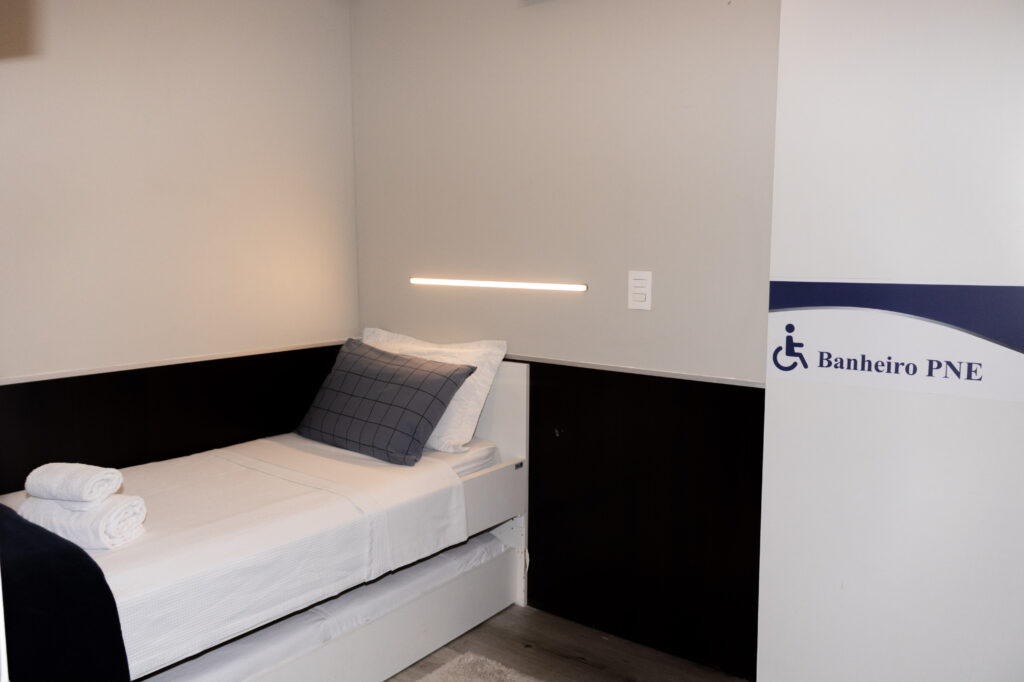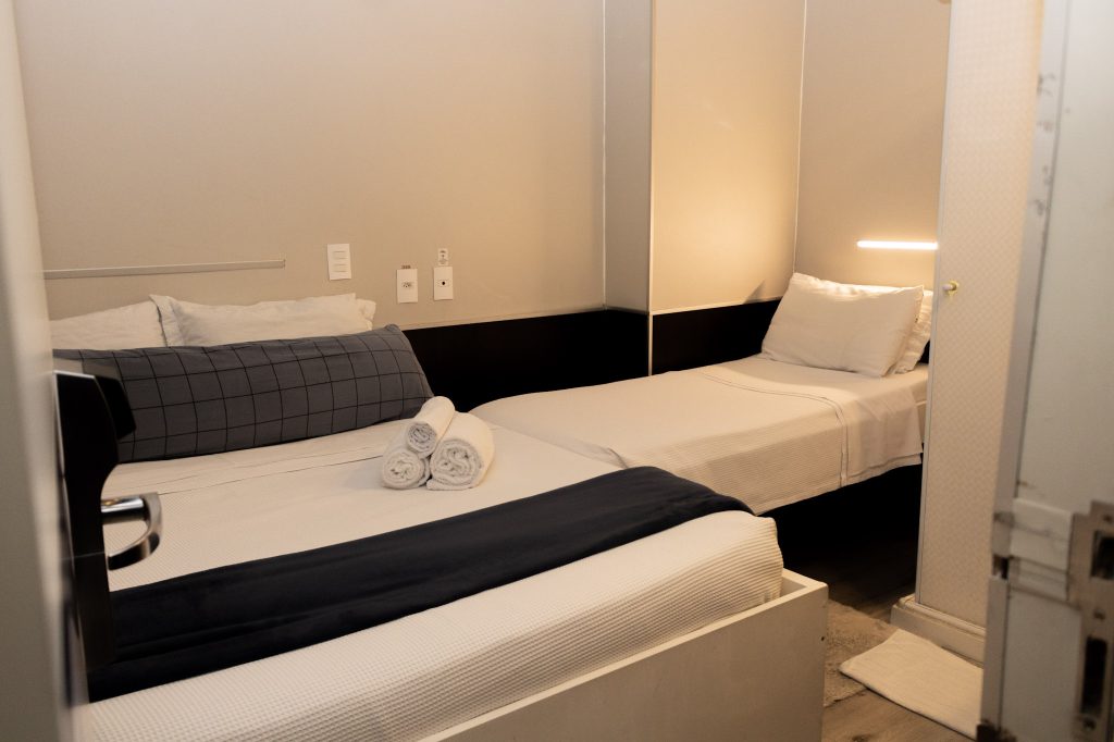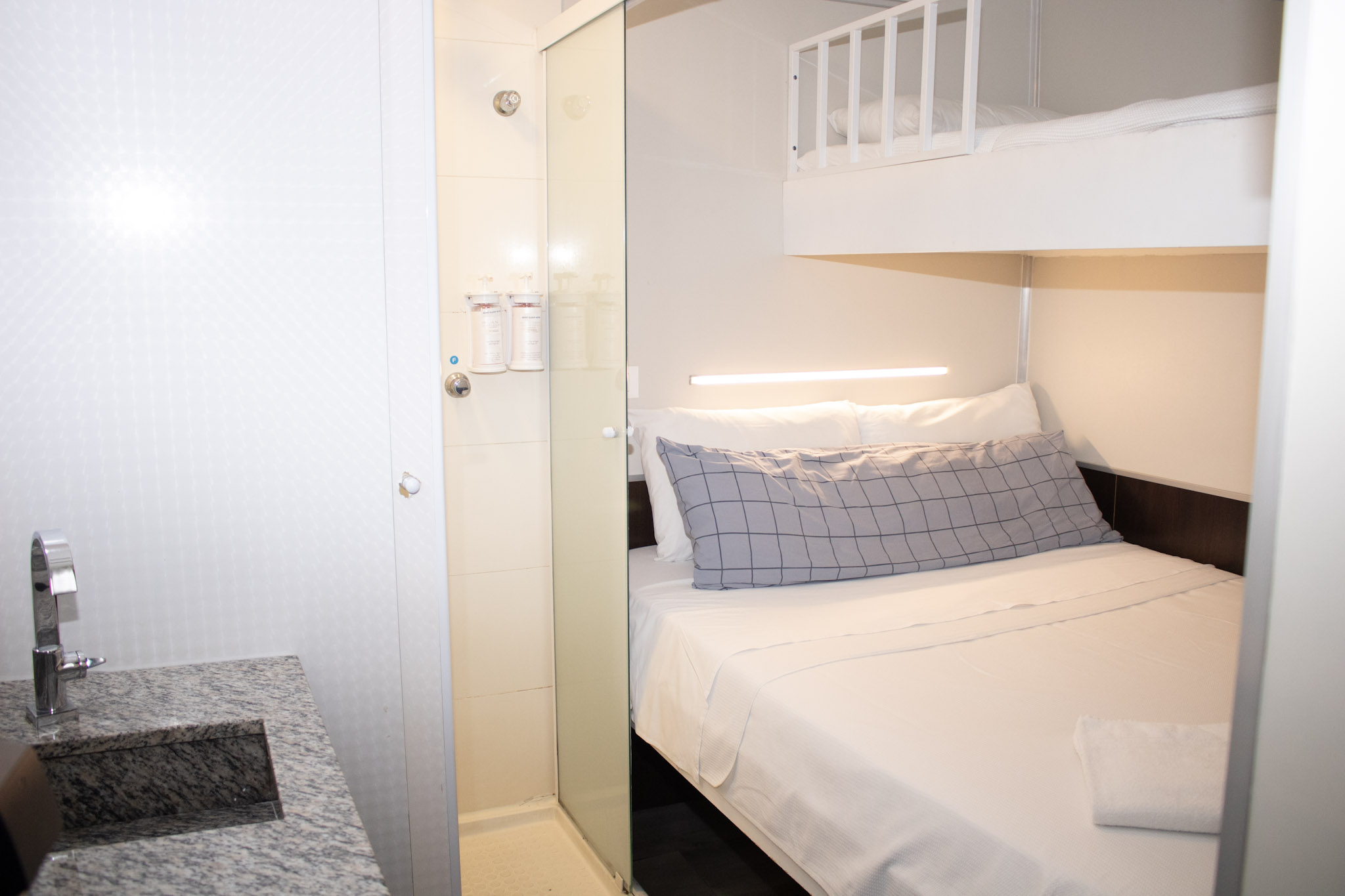 Cabines modernas, silenciosas e climatizadas, projetadas para proporcionar um sono revigorante